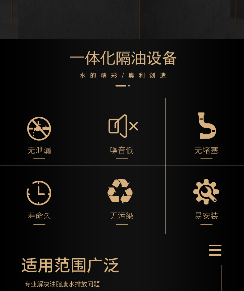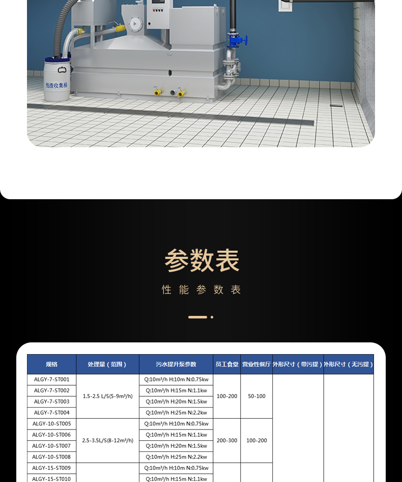 ALPY餐飲油水分離器為全自動(dòng)產(chǎn)品,標(biāo)準(zhǔn)配置包含自動(dòng)除渣、自動(dòng)油水分離、渣桶過重報(bào)警、自動(dòng)反沖洗、自動(dòng)強(qiáng)排、自動(dòng)恒溫、自動(dòng)排泥、輔助水箱、自動(dòng)液位功能、全自動(dòng)控制柜控制,無需人工值守。適用于中、大型餐飲服務(wù)企業(yè)、商業(yè)廣場(chǎng)、酒店等.用于室內(nèi)安裝。