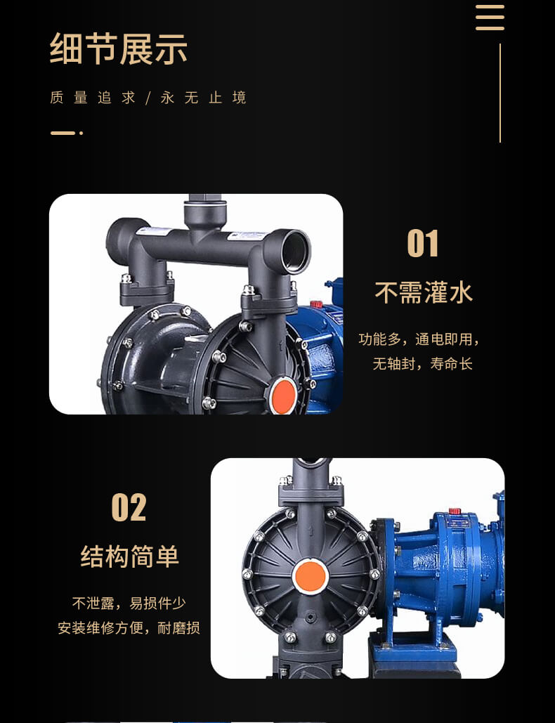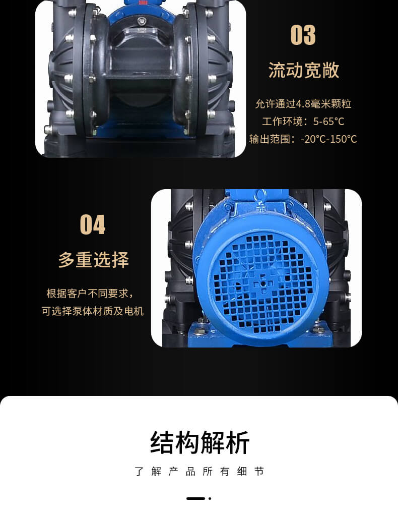 DBY 型電動(dòng)隔膜泵是一種新型的泵類,近年來,在隔膜材質(zhì)上取得了突破性的進(jìn)展。本泵應(yīng)用于石化、陶瓷、冶金等行業(yè),這種泵的主要特點(diǎn)是不需灌引水。直徑在10毫米以下的顆粒、泥漿等均可以毫不費(fèi)力地通過。由于隔膜將被輸送介質(zhì)和傳動(dòng)機(jī)械件分開,所以介質(zhì)絕對(duì)不會(huì)向外泄漏,且泵本身無軸封,使用壽命大大延 長(zhǎng)。根據(jù)不同介質(zhì),隔膜分為氯醇橡膠、氟橡膠、丁晴橡膠等,完全可以滿足不同用戶的要求。