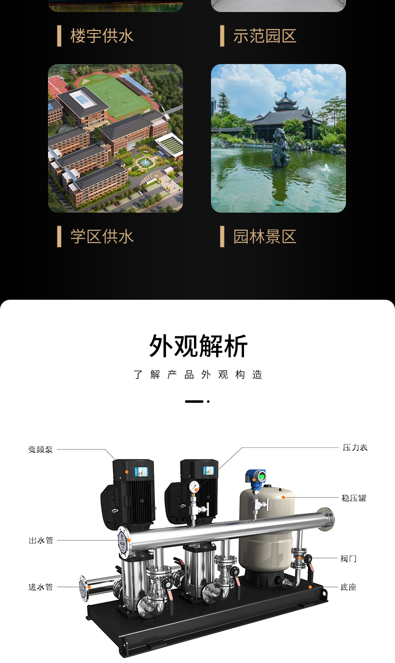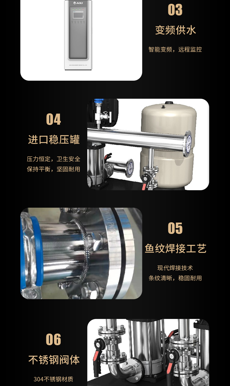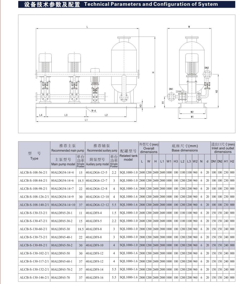 ALCB-S恒壓變頻供水設(shè)備是由最新性能ALBK變頻控制柜和2臺(tái)以上水泵并聯(lián)組成的尖端加壓供水設(shè)備,能夠自動(dòng)調(diào)節(jié)以滿(mǎn)足用戶(hù)的恒壓變量供水要求,供水管網(wǎng)壓力保持恒定,整個(gè)供水系統(tǒng)始終保持高效節(jié)能的最佳狀態(tài)。供水方式有變頻供水和壓力供水兩種,變頻供水是自動(dòng)調(diào)節(jié)某臺(tái)水泵的轉(zhuǎn)速或多臺(tái)水泵投入\退出運(yùn)行,使供水管網(wǎng)壓力保持恒定的理想供水方式,操作簡(jiǎn)單。