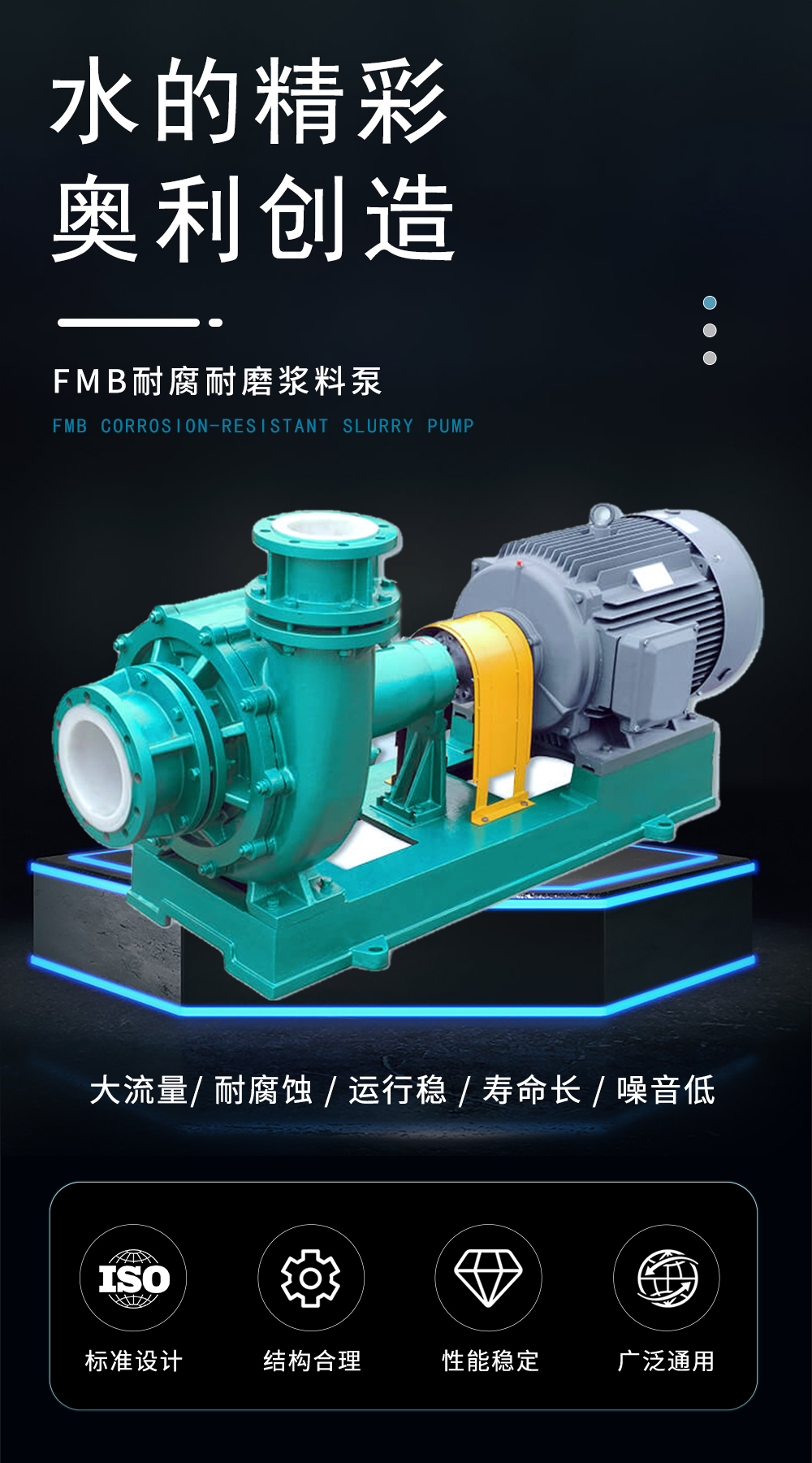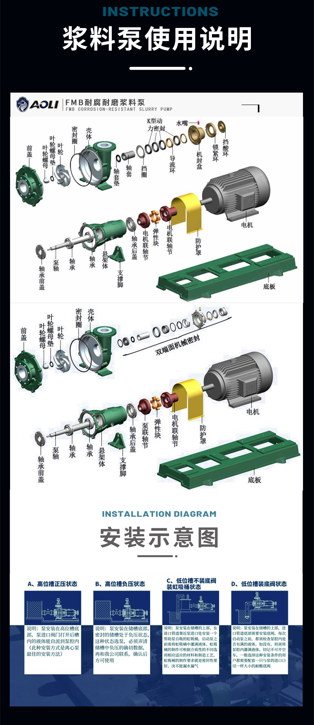 FMB耐腐耐磨砂漿泵簡稱“FMB砂漿泵”,過流部件采用鋼襯目前國內(nèi)新一代耐腐耐磨合金制造。該泵集優(yōu)異的耐磨性、耐沖擊性、耐腐蝕性和耐高溫性等突出的優(yōu)點于一身,設(shè)計有K形動力密封(FMB-ZK)、內(nèi)裝單端面機械密封(FMB-ND)、內(nèi)裝雙端面機械密封(FMB-NS)三種密封結(jié)構(gòu),能適應(yīng)各種工況。特別適合輸送酸、堿性清液或料漿;冶煉行業(yè)各種腐蝕性礦漿;各種有機酸,強氧化劑,環(huán)保行業(yè)各類污水等,應(yīng)用范圍十分廣泛。