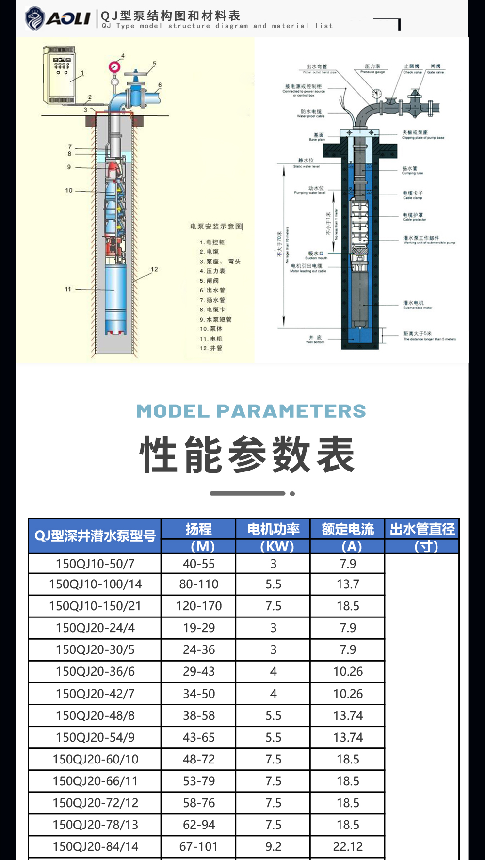 QJ型深井泵是電機與水泵直聯(lián)一體潛入水中工作的提水機具,它適用于從深井提取地下水、也可用于河流、水庫、水渠等提水工程:主要用于農(nóng)田灌溉及高原山區(qū)的人畜用水,亦可供城市、工廠、鐵路、礦山、工地供排水使用。