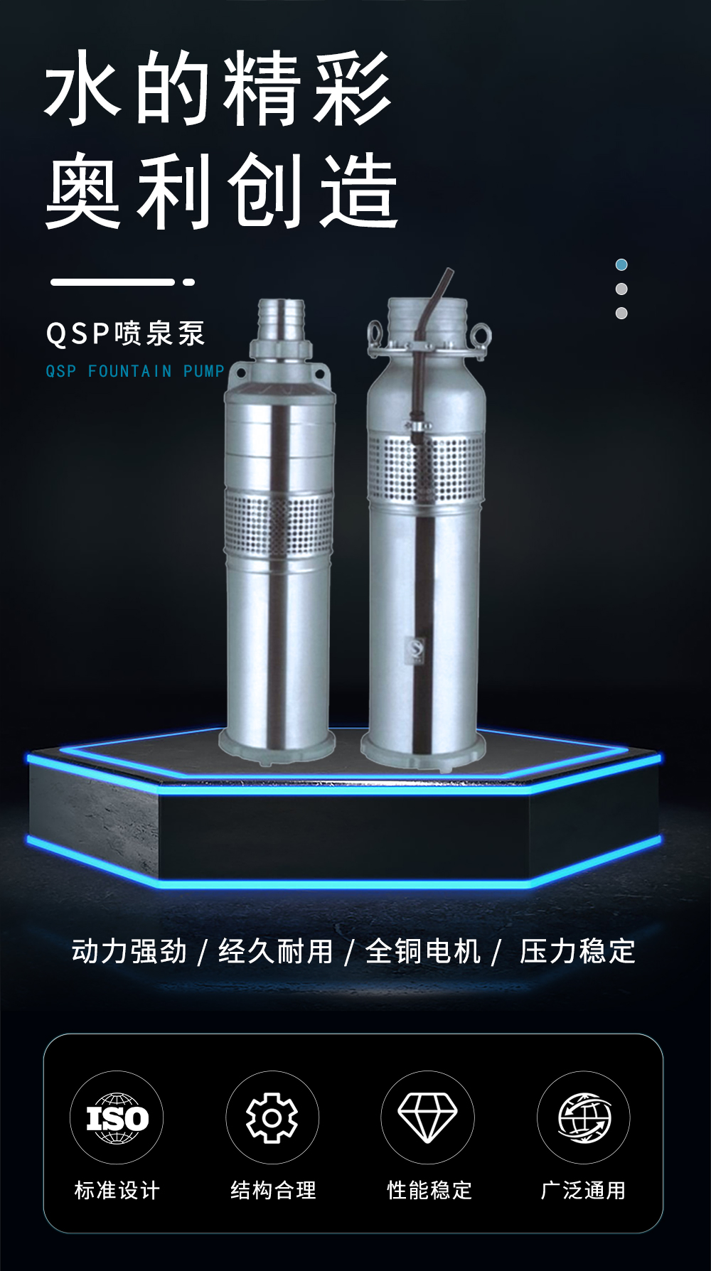 QSP型噴泉專用泵是一種新型的噴泉專用水泵,主要用于噴泉供水,水產(chǎn)等場(chǎng)所。噴泉泵廣泛用于低揚(yáng)程的城市、農(nóng)田排灌、噴灌;工業(yè)及民用的供、排水系統(tǒng),丘陵、山區(qū)引水、以及低洼地排除積水。