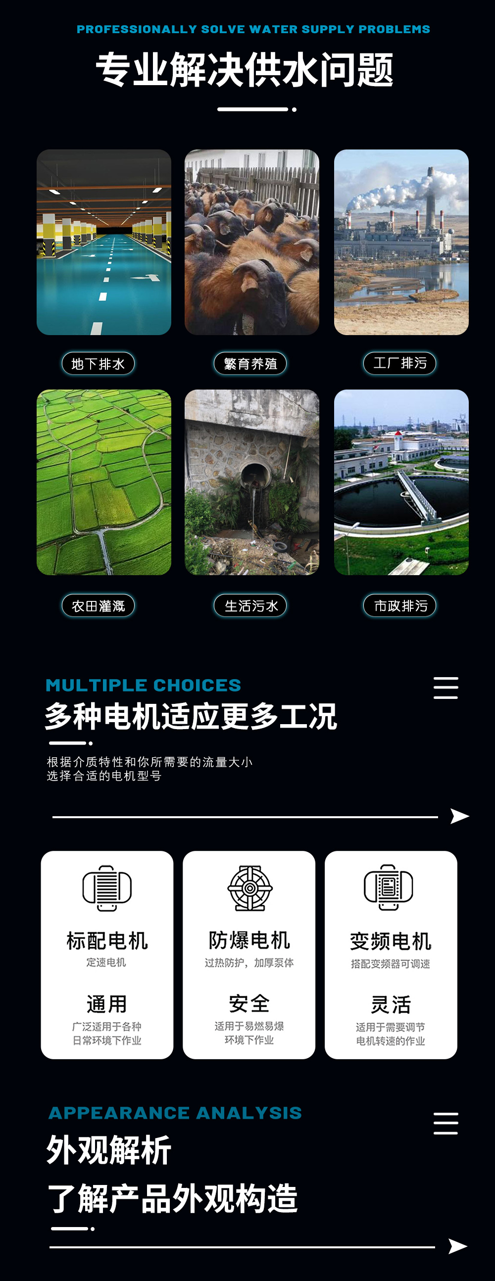 【流量范圍】8-150m3/h 【揚(yáng)程范圍】4-25m 【使用溫度】0℃-40℃ 【配套功率】0.75-7.5KW